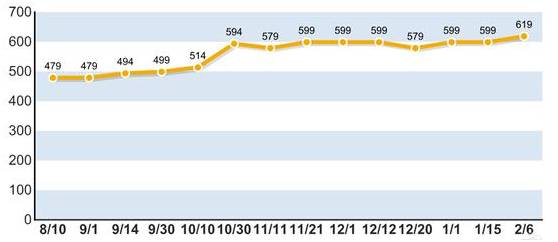 pika 本身使用磁盘作为存储介质,并自带多种压缩方式供你选择(默认是 snappy)。在实际测试中 Redis 的数据导入 pika 后只有原体积的 1/3~1/8,另外 SSD 本来也比内存便宜多了,下图是 250G SSD 的价格变化曲线,周期和之前的内存完全一样: