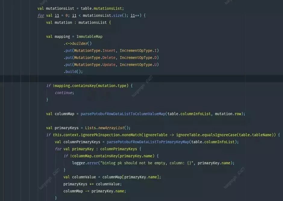 其次,合库合表后,原有 SQL Server 中各个表的自增主键 ID 冲突,所以新增实现 RowDataMergeTranslator,其功能是,读取内存中的 RowData 然后进行转换,将从 SQL Server 中读取的行数据,丢弃其原有的主键列,转而使用 TiDB 生成。并根据配置文件决定哪些表需要实现这一特性。