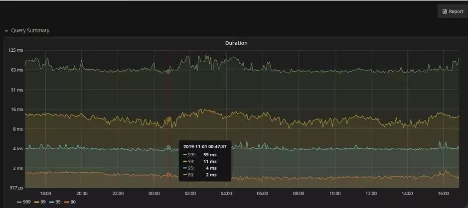 通过不断的优化 SQL,目前线上 TP99 稳定,与迁移之前并无太大差别,跟测试效果相符。对用户和业务都无感知。