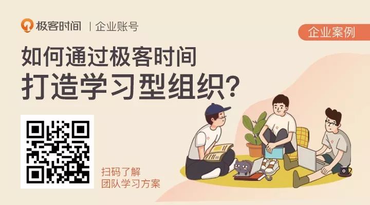 在使用场景上,企业把极客时间作为团队培养工具、新员工培训工具、优秀员工福利等,提高了技术团队的“战斗力”,同时也提高了企业在行业中的竞争力。扫码或点击“阅读原文”查看华为、贝壳、毒App等企业是如何通过极客时间打造学习型组织的↓