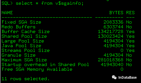 show sga命令可以简单直观的看到sga的信息: