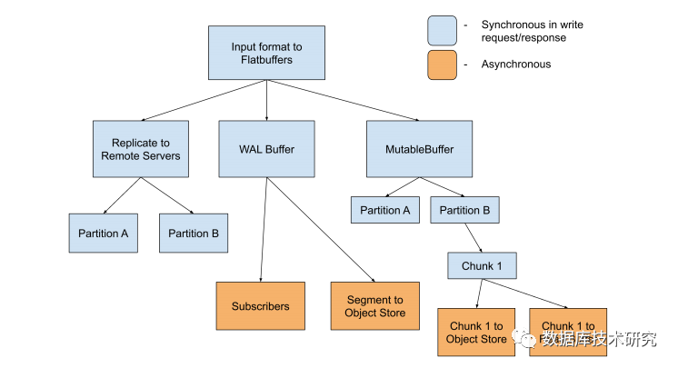 这时候远程服务器,就会收到这个flatbuffers结构的数据,收到之后的第一任务就是写入Write Buffer(这里的Write Buffer相当于其他数据库的WAL,但是不同的是功能要更多一些,可以做一些排序等额外的工作,就相当于一个写缓冲)。