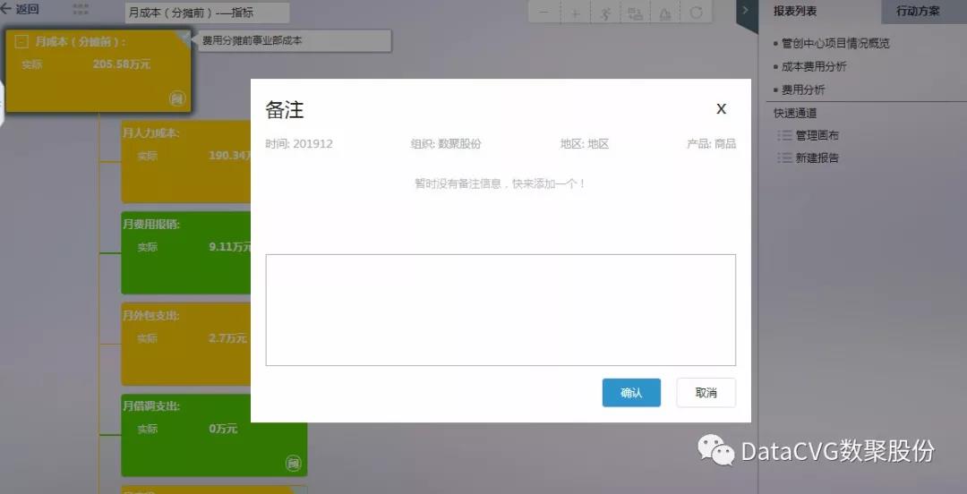第三,使用者可以打开沙盘推演功能。市场上处于空白状态的果因分析的强大功能即在此实现。果因分析之所以难以实现,而大多数分析软件能实现的只是单线简单逻辑的What-if因果分析,是因为从结果倒推到联动的多种因素是很难计算的,但是依托数聚酒窝®独创的指标树架构,基于酒窝底层数据中台的大数据基础以及智能算法,果因分析能够以非常便捷,清晰,动态的方式给使用者提供高效的预测,预算模拟的结果。