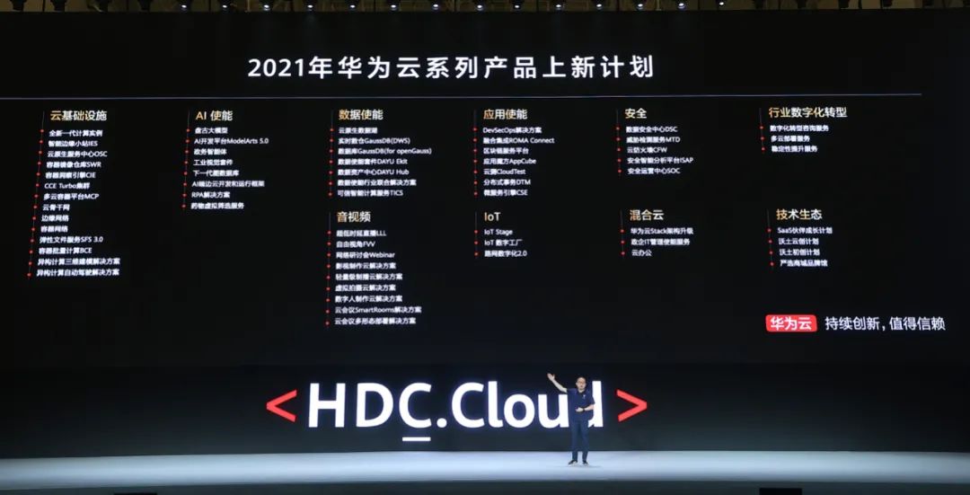 华为Cloud BU总裁、华为消费者云服务总裁张平安宣布沃土云创计划正式启动正如华为云CTO张宇昕在大会上所言:“4月初,华为云公布了2021年新品上市计划,本次再发布五大新品,华为云云原生2.0持续创新升级,助力企业实现全面云化、全栈智能。”