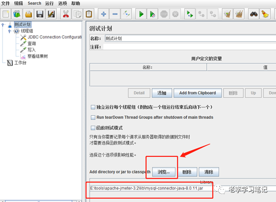 1、创建测试计划,并在测试计划中将数据库驱动添加到class path