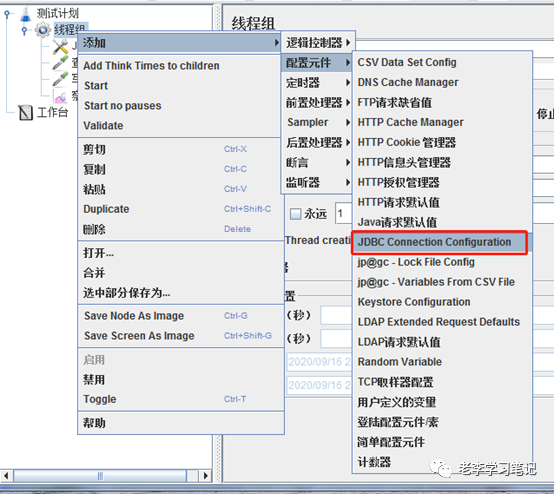 2、创建线程组,并在线程组下添加配置元件JDBC ConnectionConfiguration