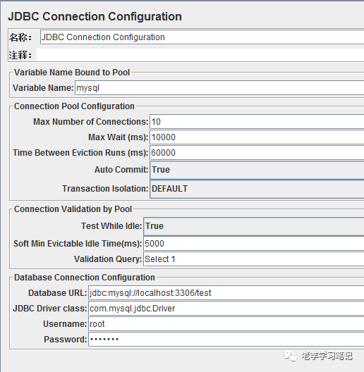 VariableName:数据库连接池的名称,我们可以有多个jdbc connection configuration,每个可以起个不同的名称,在jdbc request中可以通过这个名称选择合适的连接池进行使用。
