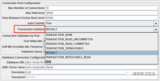 Auto Commit:自动提交。有三个选项,true、false、编辑(自己通过jmeter提供的函数设置)