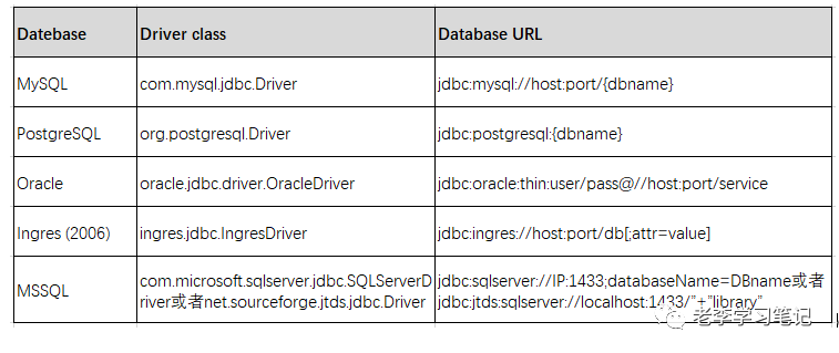 不同的数据库有不同的驱动,可根据下表对照自己使用的数据库进行下载。