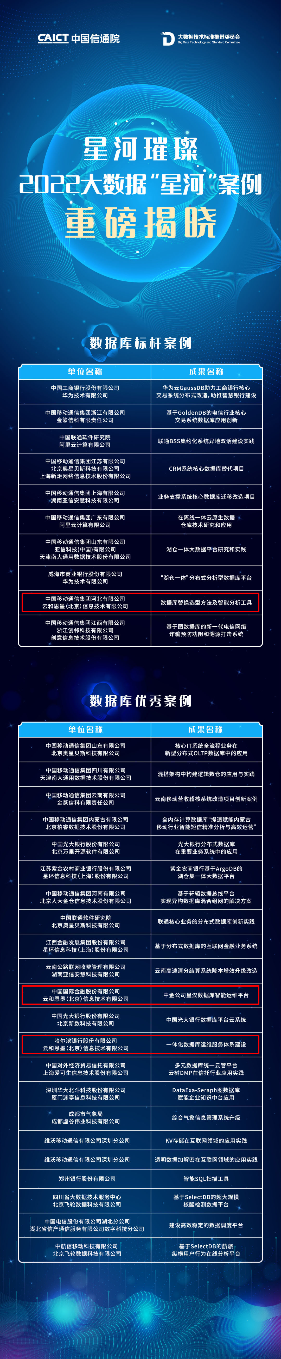 附:2022大数据“星河”案例(数据库方向)入选案例