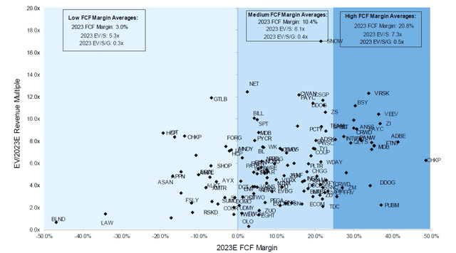 对于像Snowflake这样的基于消费的软件服务提供商来说,这种灵活的扩大/缩小规模的好处是,在经济衰退的第一时间,其增长和利润率将首先看到急剧的不利影响,即使他们看到更多的客户数量。 回顾一下,对于基于消费的软件供应商来说,客户的增长并不等同于即时的收入增长,客户今天可以注册一个 "x "数量的存储或计算能力,以确保长期的单位价格折扣,但当他们勇敢地度过迫在眉睫的宏观风暴时,就会减少使用或根本不使用它,使基于消费的软件供应商面临巨大的近期收入风险。