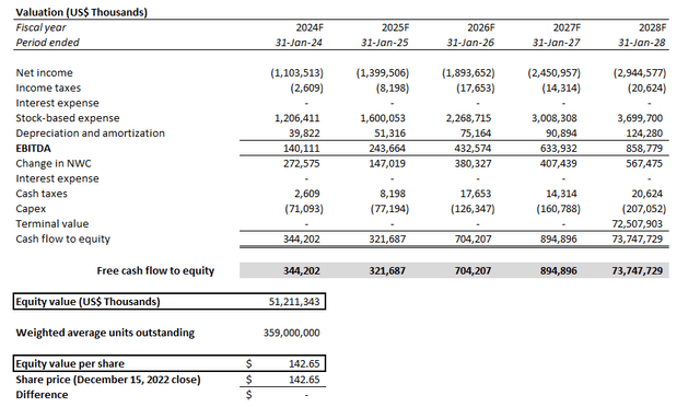 Snowflake Valuation Analysis (Author)永久增长率通常是以GDP为关键基准,根据行业的成熟度以及其他公司的具体因素(如市场领导地位和/或市场份额)进行调整来确定的。鉴于对经济增长的贡献较大,在高增长性质的行业经营的公司通常以接近或超过GDP的永久增长率进行估值。 来源:"做空特斯拉。将高估值与经济联系起来"