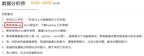 数据分析岗位的招聘,不管是哪个段位的,熟练使用SQL都是必备技能,所以,学起来把!
