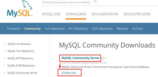 百度MySQL,进入MySQL官网。