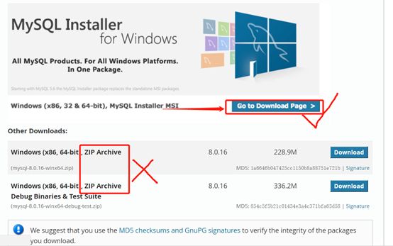 进入下载页面往下滑,注意,这里我们要选择.msi的安装方式,点蓝色背景框的go to download page,不要选择下载下面的.zip的文件包,zip需要自行配置,很复杂,稍微配置不好就用不了,msi就直接图形化配置一路默认即可。