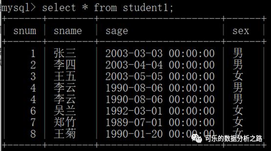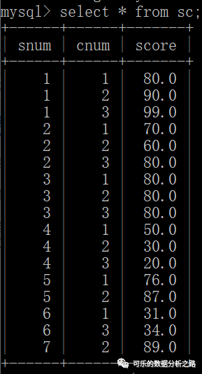 本节内容要用到的数据表:成绩表(sc),学生基本信息表(student1)