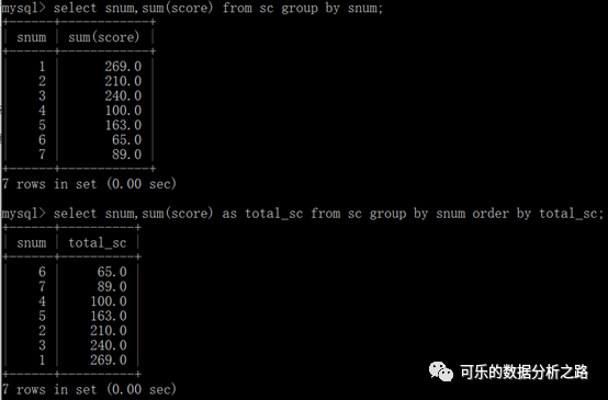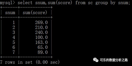 【group by + sum】,结合sum函数,可以统计每个学号的总成绩,Excel里是对score求和。