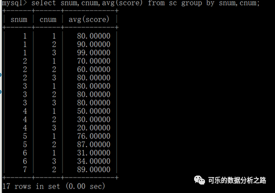 select snum,cnum,avg(score) from sc group by snum,cnum;