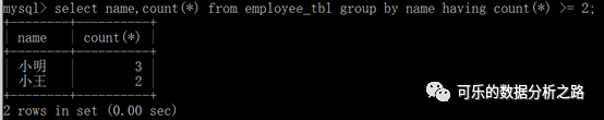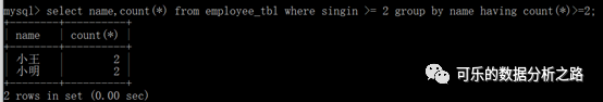 select name,count(*) from employee_tb1 where singin>=2 group by name having count(*) >=2;