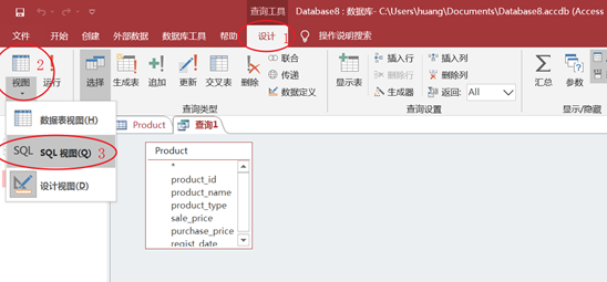 接下来我们创建一个sql查询,创建>查询设计,视图>SQL视图
