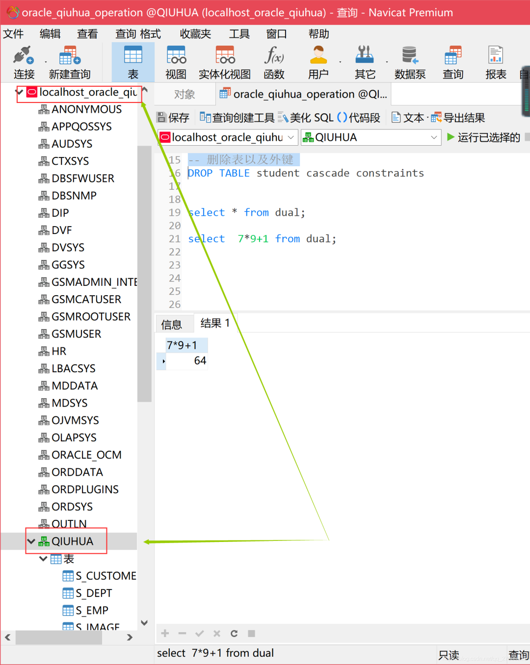 6、用新创建的用户连接数据库