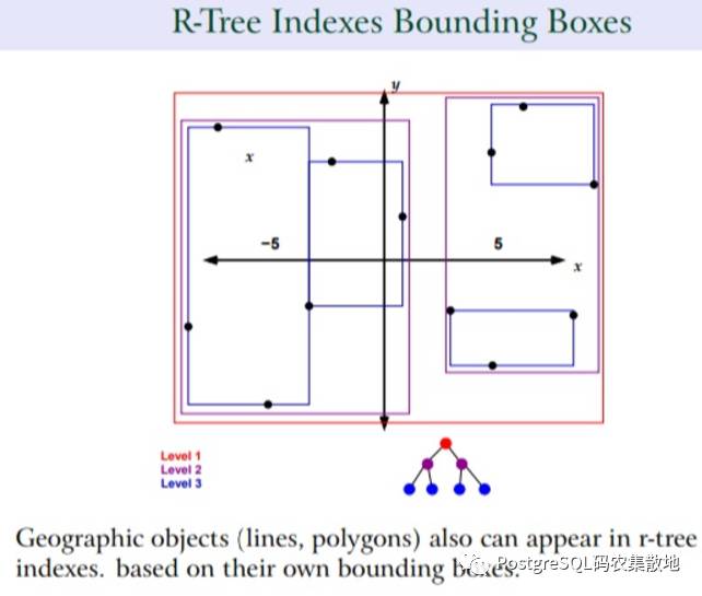 实际上GiST索引思想与之类似,只不过它不是通过编排HEAP BLOCK来实现这一的划清边界的,而是通过R-Tree结构来表示的。这一的话,用户在写入数据时,对应的空间对象写到哪个GiST索引分支就非常的明朗。(当然,GiST索引和其他索引一样,随着数据的写入会出现SPLIT的需求。)