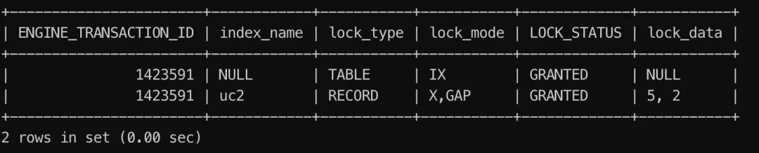 select ENGINE_TRANSACTION_ID, index_name, lock_type, lock_mode, LOCK_STATUS, lock_data from performance_schema.data_locks;