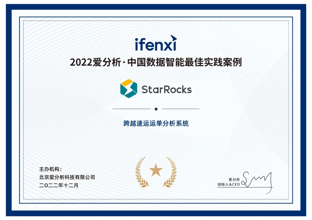 跨越速运是 StarRocks 社区的老用户,从 2021 年下半年开始将 StarRocks 作为大数据引擎支持,单笔运单计算时长从 90 秒缩短到 4 秒,单位时间内订单计算量提升了 400%,一年节省了百万级成本开销。恭喜跨越速运!来年继续携手共建极速统一新范式!