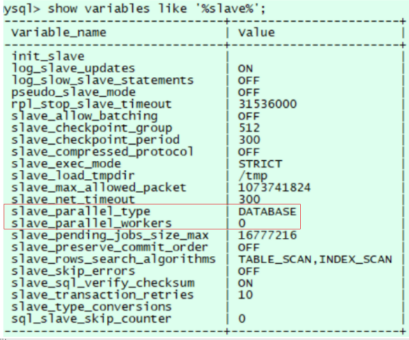 客户现场的 slave_parallel_type 值为 DATABASE ,slave_parallel_workers 值为0,此时主从同步使用的是单 SQL 线程方式,在遇到大事务时产生延迟的可能性更大。推荐客户换成 MTS 方式,但是客户反馈之前一直使用的是该种方式,之前未发生此种现象,需要排查原因。