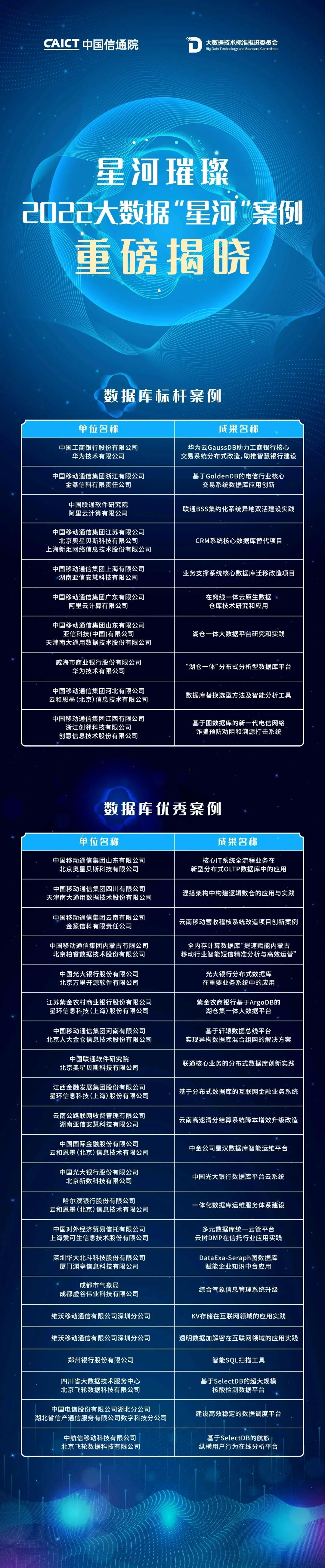 2022年12月, 大数据技术标准推进委员会公布了第六届大数据“星河”案例的标杆案例和优秀案例的名单。