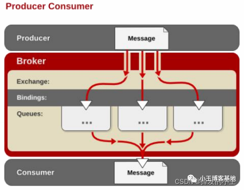 的角色。生产者把消息发布到 Exchange 上,消息最终到达队列并被消费者接收,而 Binding 决定交换器的消息应该发送到那个队列