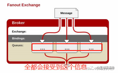 ,每台子网内的主机都获得了一份复制的消息。fanout 类型转发消息是最快的、广播