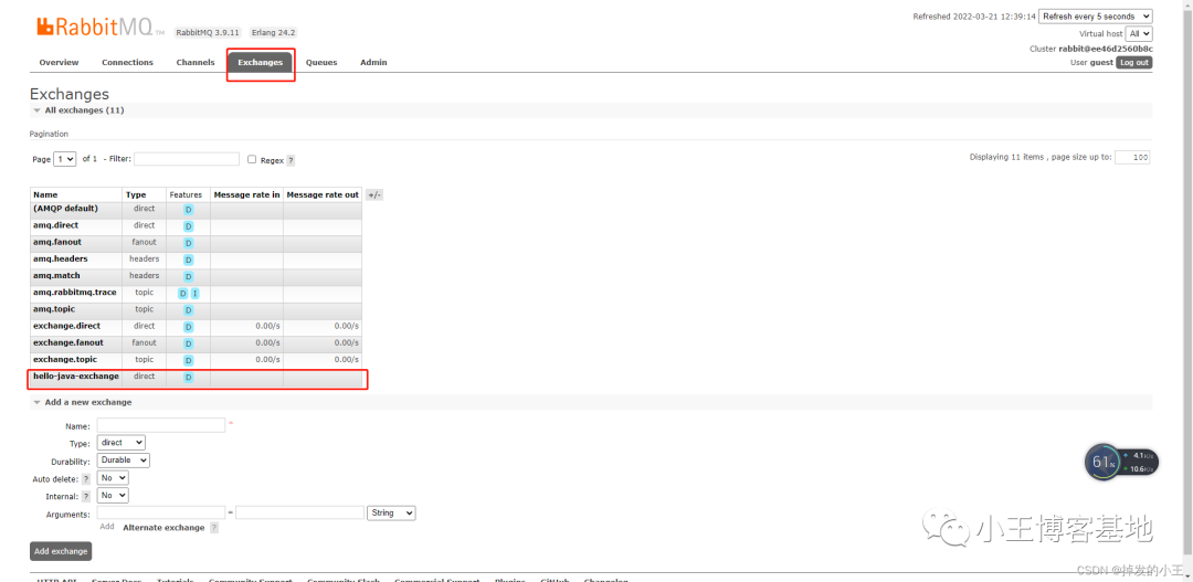 虚拟主机,表示一批交换器、消息队列和相关对象。虚拟主机是共享相同的身份认证和加密环境的独立服务器域。每个 vhost 本质上就是一个 mini 版的 RabbitMQ 服务器,拥有自己的队列、交换器、绑定和权限机制。vhost 是 AMQP 概念的基础,必须在连接时指定,RabbitMQ 默认的 vhost 是 。