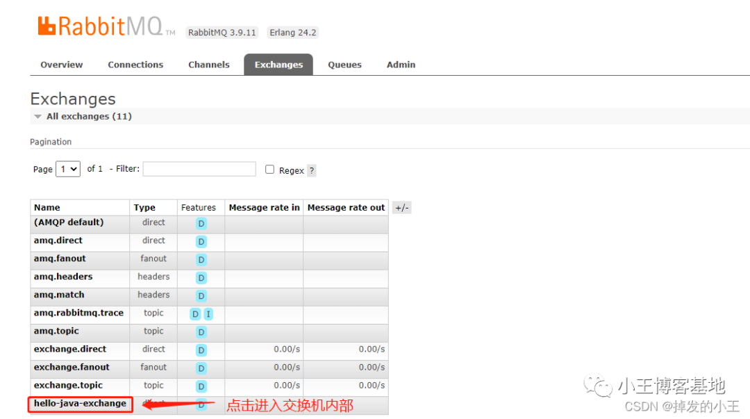 交换器,用来接收生产者发送的消息并将这些消息路由给服务器中的队列。