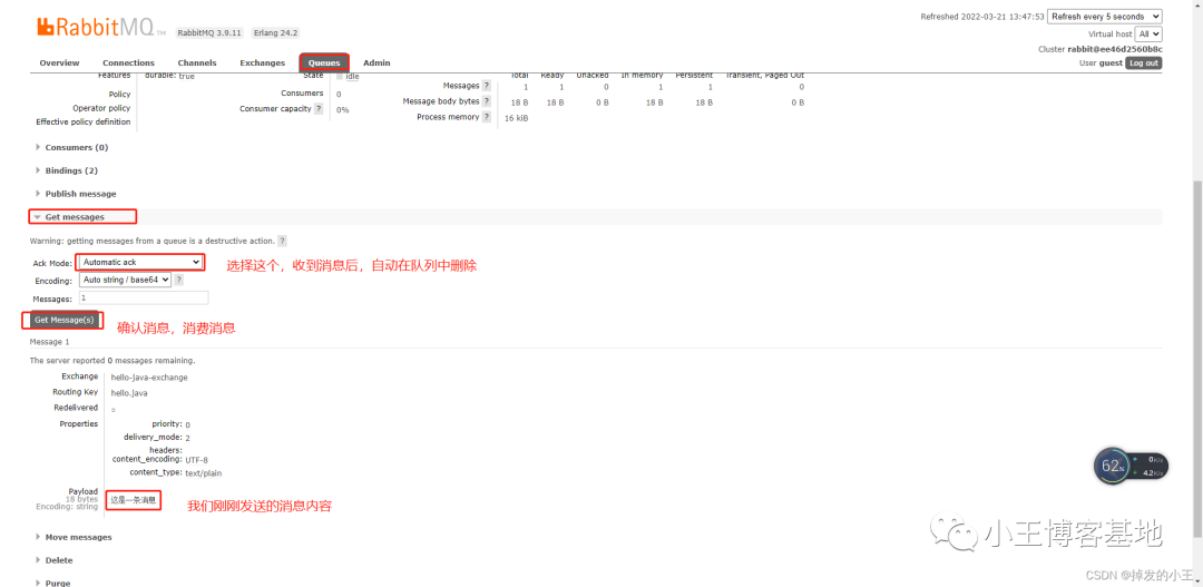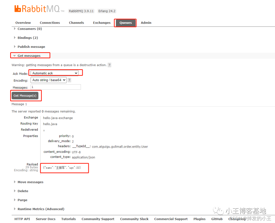 这样我们就对RabbitMQ有了新的认识,从入门也算走上了实践!后面有时间小编再把消息的可靠性发出来,也就是进阶版!!