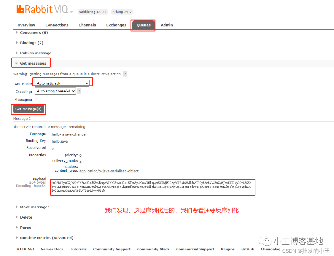 拓展: 我们一次发送十条消息,每条接收消息假如耗时10s,此时会接收处理完一个消息,才会接收下一个,就是我们说的串行化!!