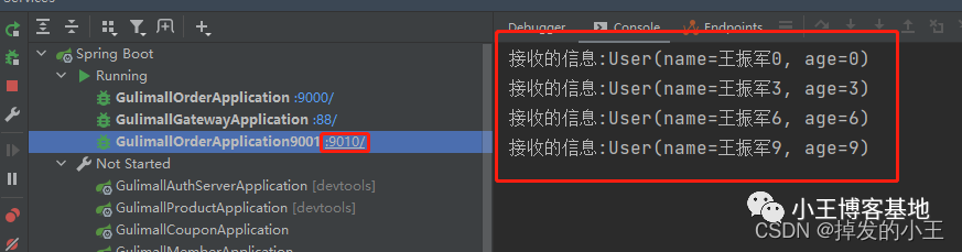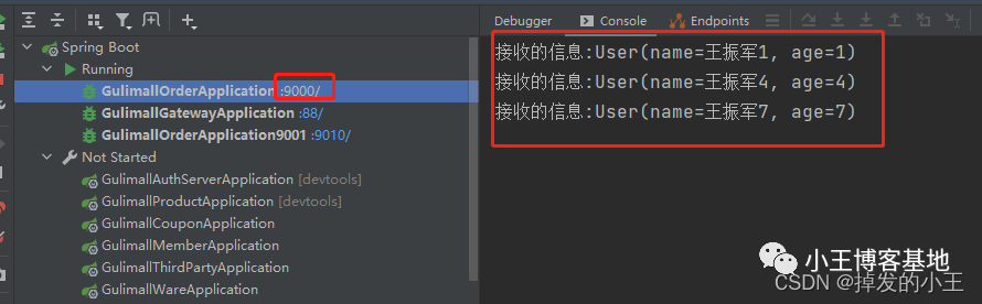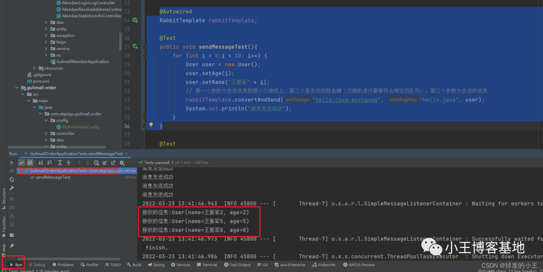 别急小编来告诉大家,这是因为我们测试是使用SpringBoot的测试类进行的,有的部分消息被测试的接收了!大家不信可以看一下测试的控制台,找一下: