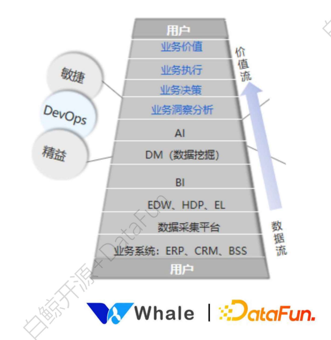 随着企业对于数据分析和利用的需求不断增长,数据来源的不断增多,数据技术的愈加复杂,同时参与数据工作的团队和角色越来越多,数据的开发的工作量也越来越大,而且时间上又要求周期短质量高,因此需要数据团队能够持续地优化数据开发的流程。所以在这个阶段借鉴和应用了 DevOps 和精益管理的方法,形成了 DataOps 的方法和实践,通过让数据在企业内部快速流动来服务数据分析和业务运营, 其三个最主要的特性是敏捷,DevOps 和精益化生产。通过数据流产生价值流,并贯穿于整个 DataOps 的全生命周期。