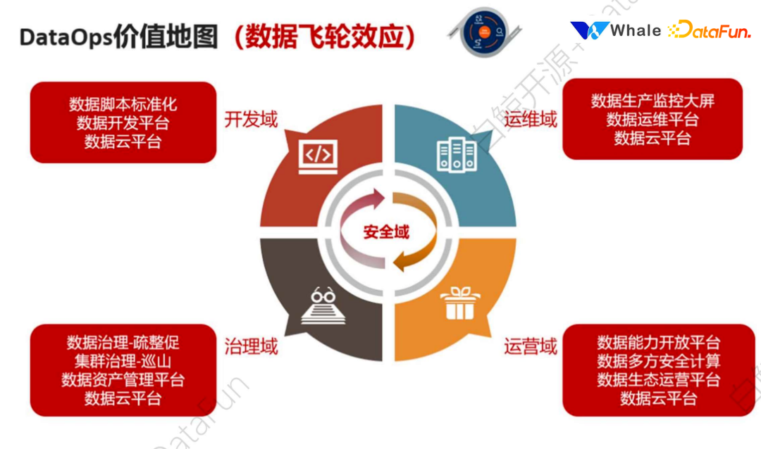 总结一下,DataOps 技术满足了数字化时代企业管理对于数据管理的三大战略趋势和价值定位。满足了数据分析民主化的战略趋势和定位,这使得数据分析的技术门槛变得更低,数据的使用会更友好,让所有岗位的人员都可以掌握数据分析能力,让数据更容易被发现。逐渐形成一种将数据作为沟通语言,一切决策能力以数据为依据的数据文化。实现业务价值的精益化,从过去强调数据资产的管理到数据整个应用生命周期的管理来更快地驱动数据流向业务价值。为了支撑更多的应用和需求,DataOps 需要支持所有的场景和数据类型。DataOps 可以帮助我们在数据开发、运维、治理、运营、安全这五大领域发挥出非常大的实用价值。