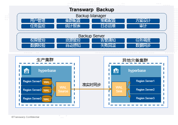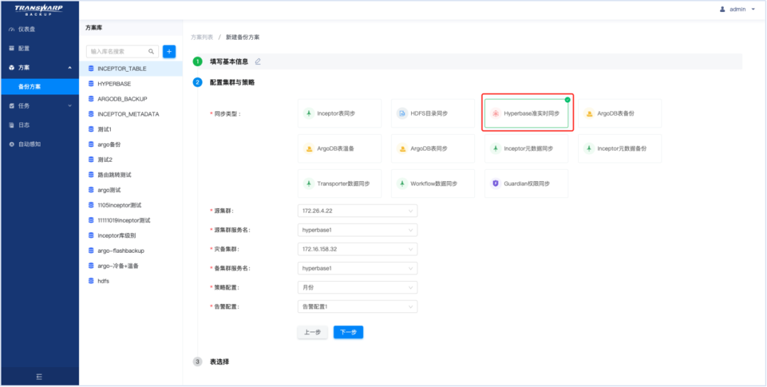 按2:1部署灾备集群,部署Transwarp Backup,创建Hyperbase准实时同步方案,开启同步: