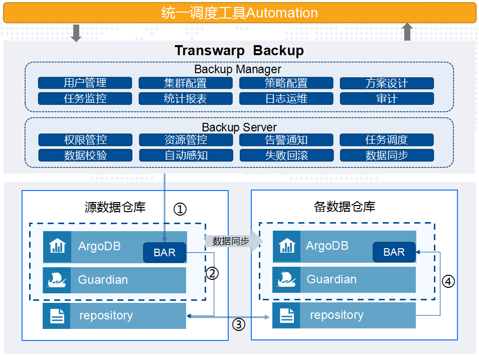 星环科技基于TranswarpBackup(TBAK)提供建设方案,如下图,