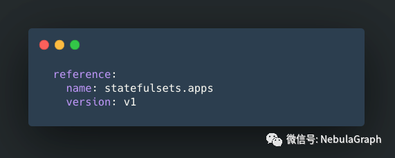Nebula Operator 计划支持多种工作负载控制器,通过使用 reference 配置项,可自主地选择使用哪一种工作负载控制器,当前在原生的 StatefulSet 基础上,Nebula Operator 还额外支持社区版 OpenKruise 的 AdvancedStatefulSet。用户可根据自身业务的需要,在 Nebula Operator 中使用如原地升级、指定节点下线等高级特性,当然这也需要在 Operator 内部实现相应的配置,目前只支持原地升级的参数。