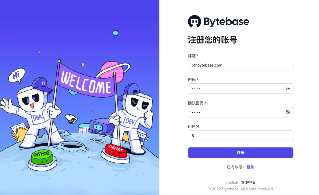 退出再次注册账号 B,后面使用开发者指代该账号。该账号将被赋予 工作空间开发者