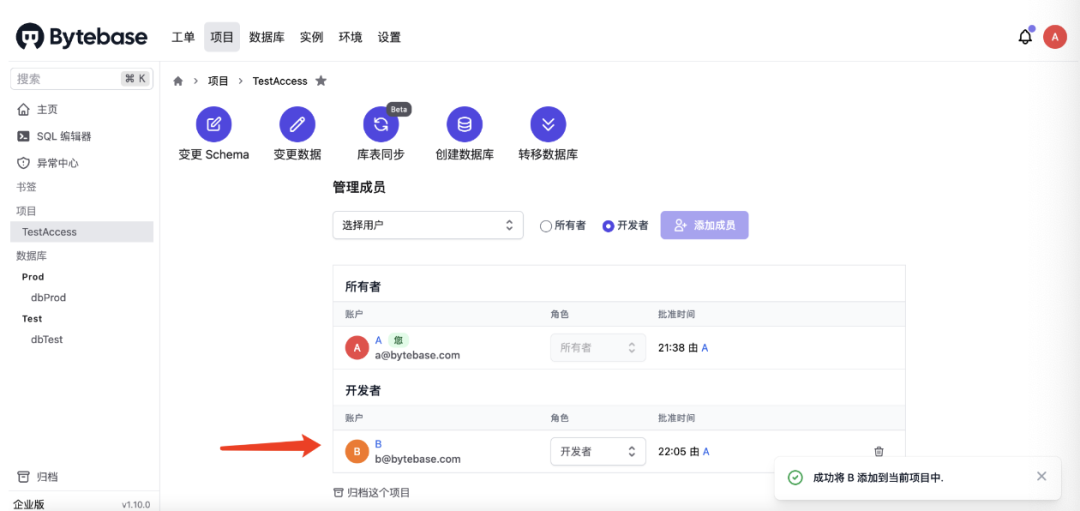 的权限。更多权限相关请查看 https://www.bytebase.com/docs/concepts/roles-and-permissions