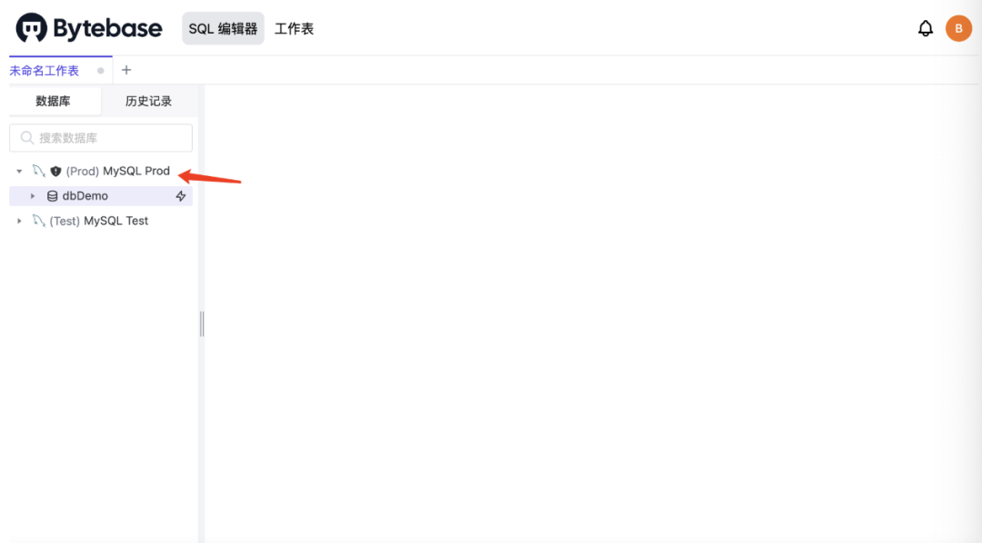 通过开发者账号进入 SQL 编辑器,无法看到 Prod 环境下的的数据库。