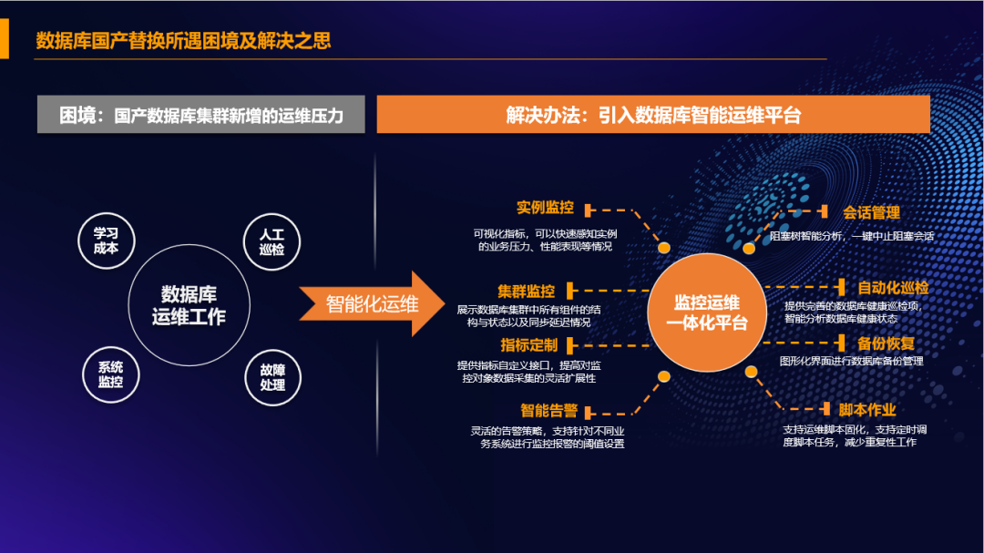 用户在完成国产数据库改造后,往往面对新的技术和产品,DBA面临着较大运维压力,需要对新数据库有一个学习、了解、熟悉的过程,缺乏成熟经验。