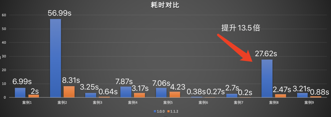 根据以上线上真实结果所示,Doris 1.1.2 版本相比 Doris 1.0.0 版本性能提升显著,对于大部分场景有2倍以上提升,少部分查询有近14倍的性能提升,效果好于预期。