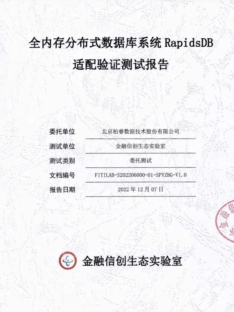 近日,柏睿数据全内存分布式数据库系统RapidsDB通过金融信创生态实验室的适配验证,为金融信创产业发展贡献“柏睿力量”。