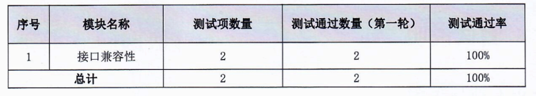 在兼容性方面,测试范围包括接口兼容性共1个模块,执行2条用例,测试项100% 全部通过。