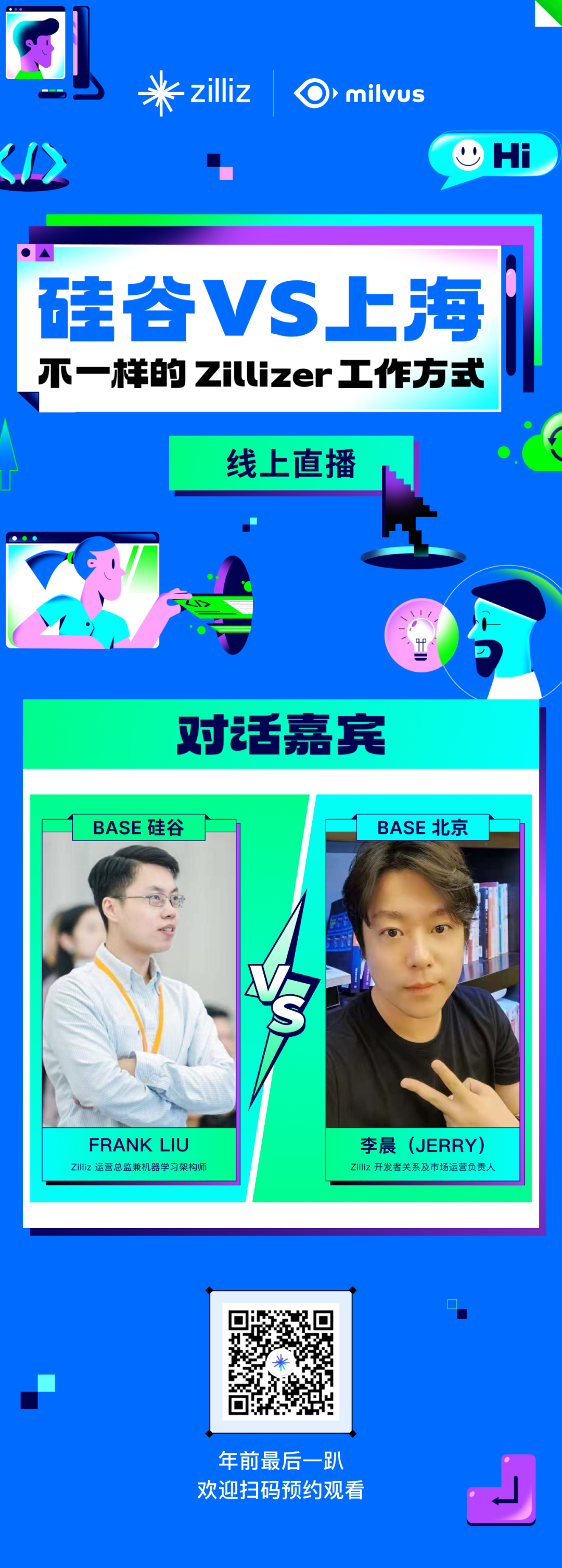 本周正值迎接新一年的到来,我们邀请了来自北京、硅谷职场的两位 Zilliz 大佬,听听他们讲述在不同城市拥有的不同生活和工作方式;同时作为行业前辈,他们也会带来关于行业、技术、运营和商业化的经验分享,为大家带来这场横跨南北半球的 Zillizer 对话。